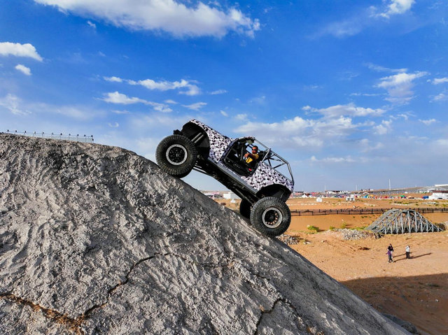 如果说沙漠冲沙是速度与激情的释放,那么岩壁攀爬则是力量与控制的艺术。10月1日,在阿拉善梦想公园攀岩赛道,著名越野攀爬玩家、虎克之路创始人高劲松,驾驶着一辆爆改版坦克为全场观众奉献了一场心跳加速的极限攀爬表演。